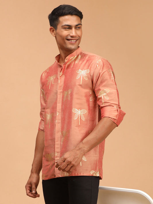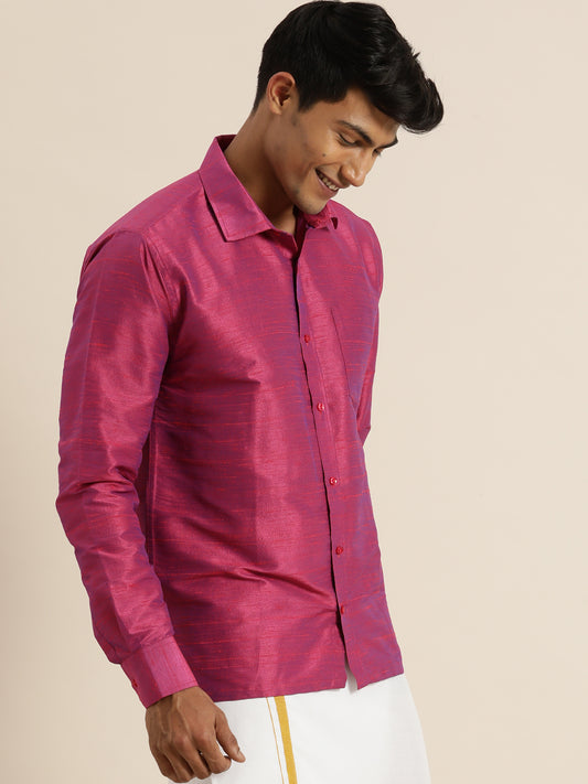 Men's Pink Silk Blend Straight Ethnic Shirt