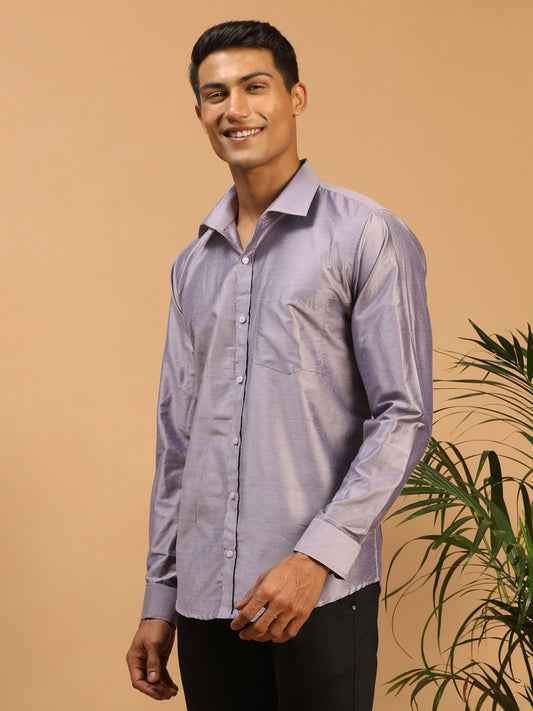 Men's Purple Silk Blend Straight Ethnic Shirt