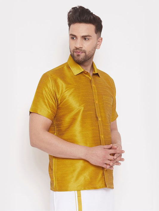 Men's Mustard Silk Blend Straight Ethnic Shirt