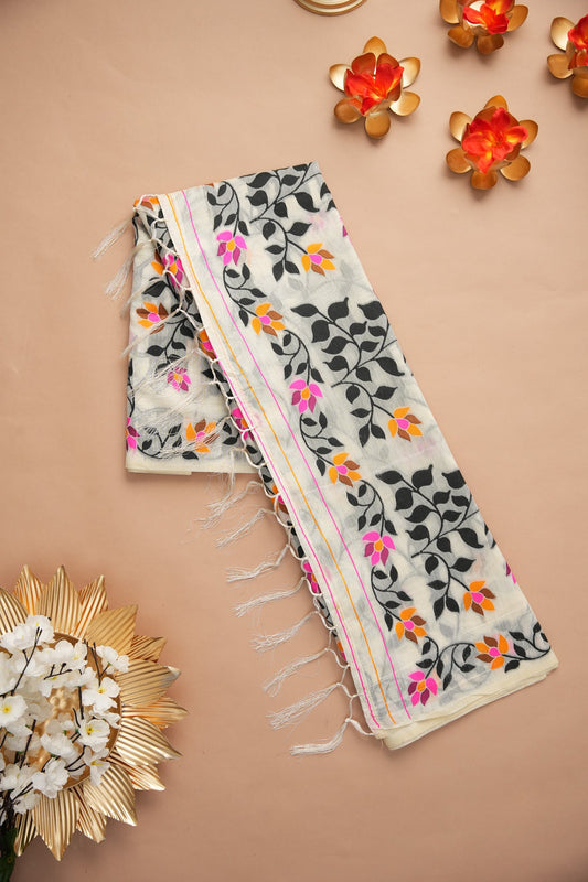 Dhiyona GR Women's Soumya Urbanic Elegance Off-White Cotton Jamdani Saree