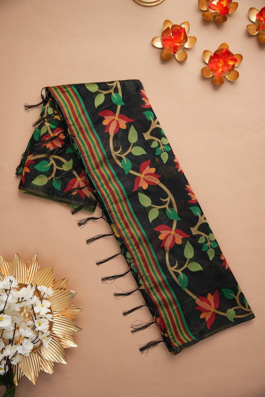 Dhiyona GR Women's Kalini Black Retro Rhapsody Organza Jamdani Saree