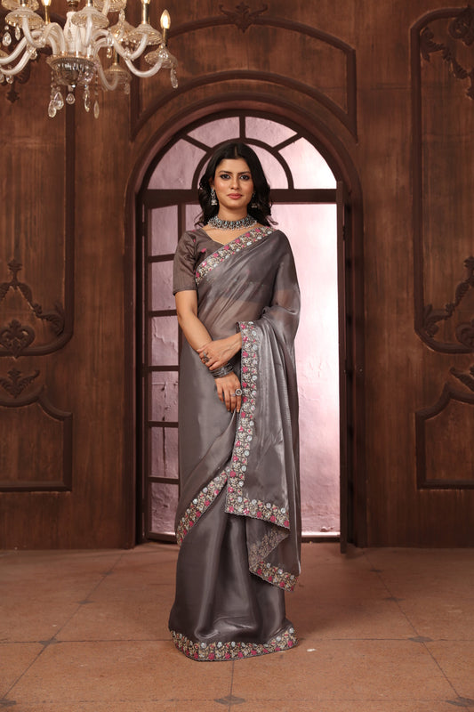 Dhiyona GR Women's Sundri Grey Jimmi Choo Embroidered Saree