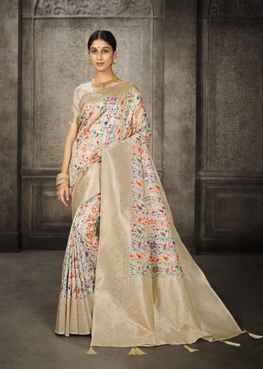 Dhiyona GR Women's Aarya Latte Beige Zari Woven Design Banarasi Pure Cotton Saree