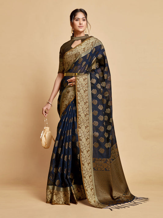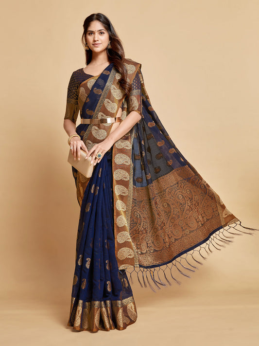 Dhiyona GR Women's Avantika Midnight Blue Zari Woven Design Chanderi Cotton Saree