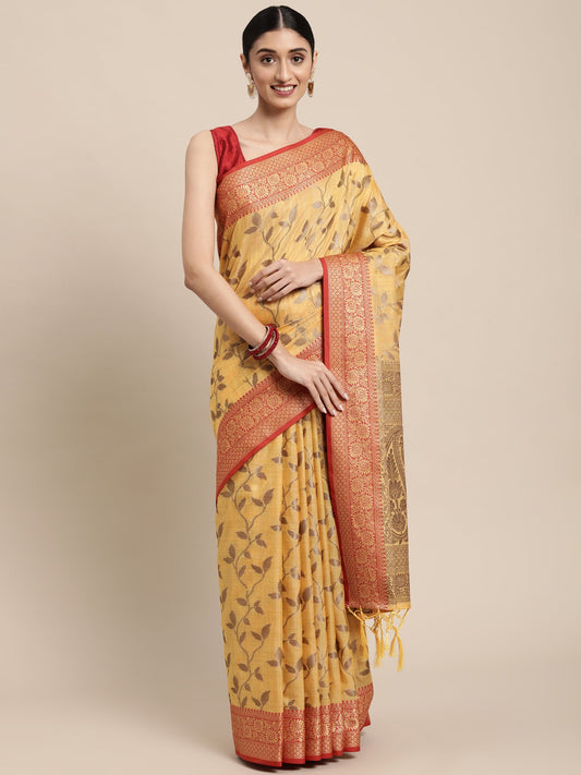 Dhiyona GR Women's Rewaa Tuscan Sun Yellow Zari Woven Design Banarasi Pure Cotton Saree