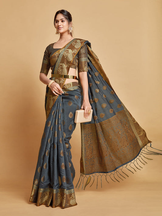 Dhiyona GR Women's Kashvi Mouse Grey Zari Woven Design Chanderi Cotton Saree