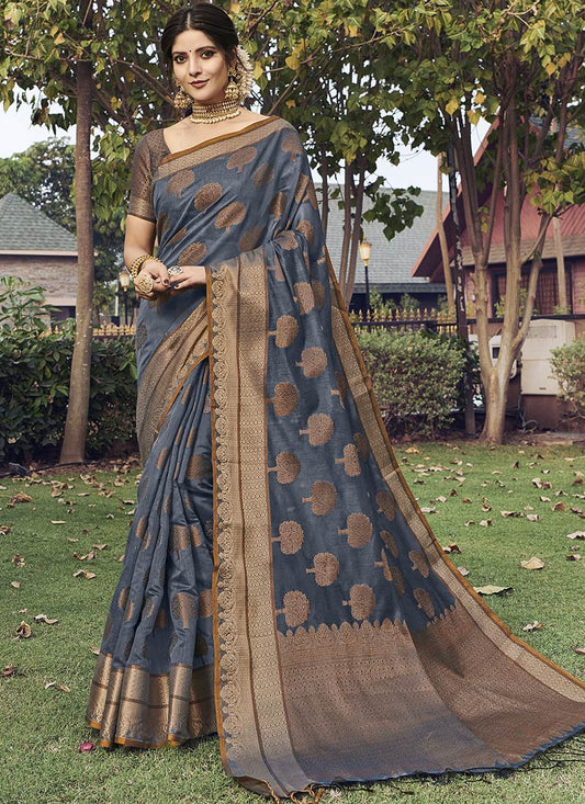 Dhiyona GR Women's Aroma Glacier Grey Woven Banarasi Art Silk Saree