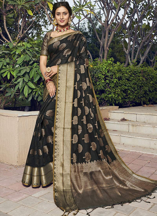 Dhiyona GR Women's Aroma Ebony Black Woven Banarasi Art Silk Saree