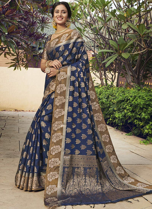 Dhiyona GR Women's Aroma Peacock Blue Woven Banarasi Art Silk Saree