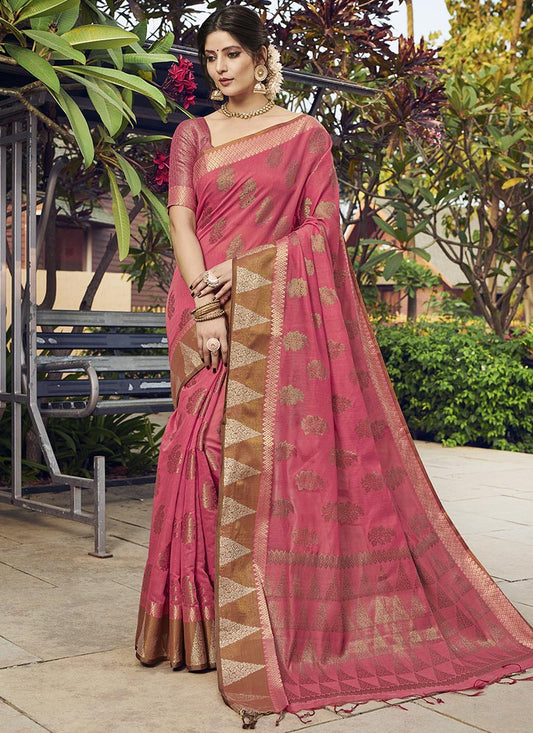 Dhiyona GR Women's Kesar Rose Gold Pink Zari Woven Design Banarasi Pure Cotton Saree