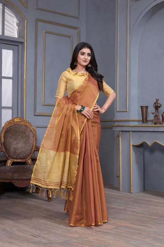 Dhiyona GR Women's Shades Mid Orange Handloom Linen Saree