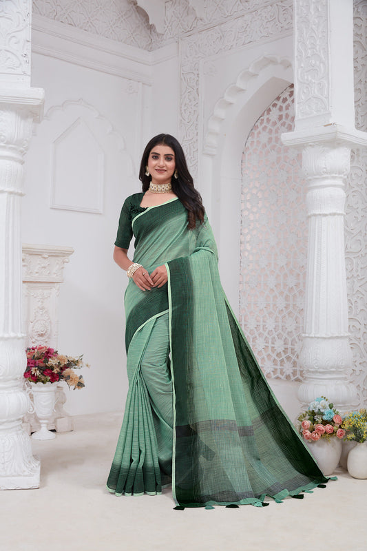 Dhiyona GR Women's Shades Sage Turquoise Green Handloom Linen Saree