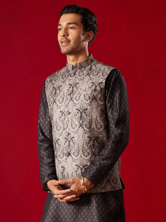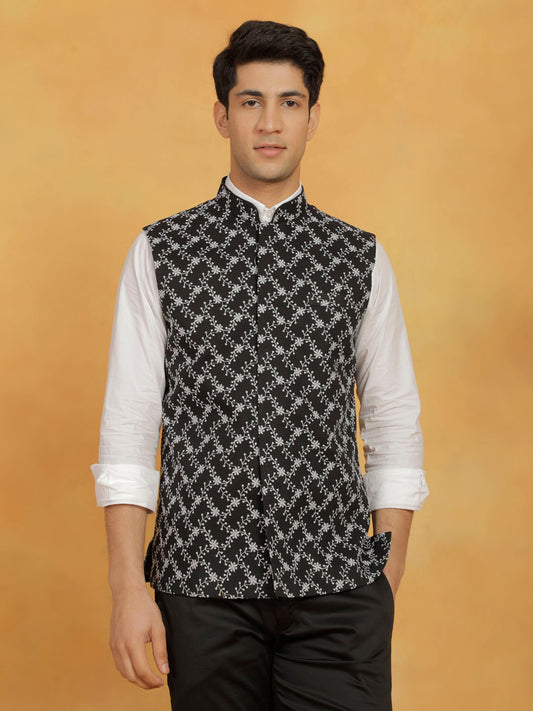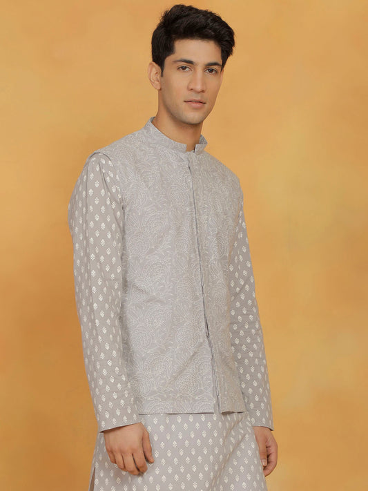 Men's Multicolor Base White Cotton Straight Nehru Jacket