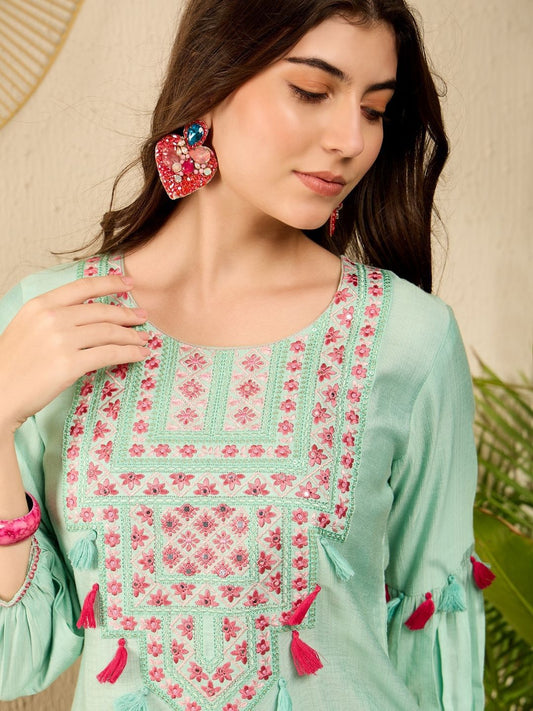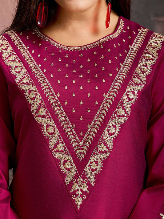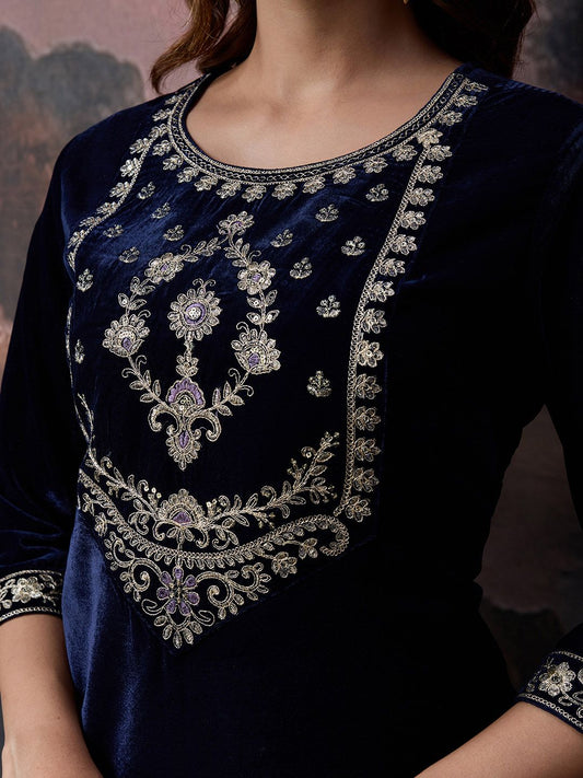 Dhiyona PD Women Floral Embroidered Round Neck Kurta With Salwar
