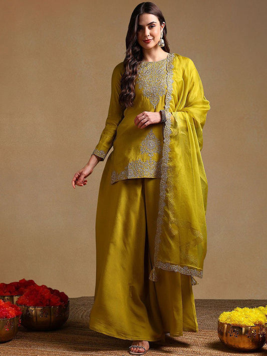 Dhiyona PD Women Women Floral Woven Design Chanderi Kurta with Palazzo & Dupatta