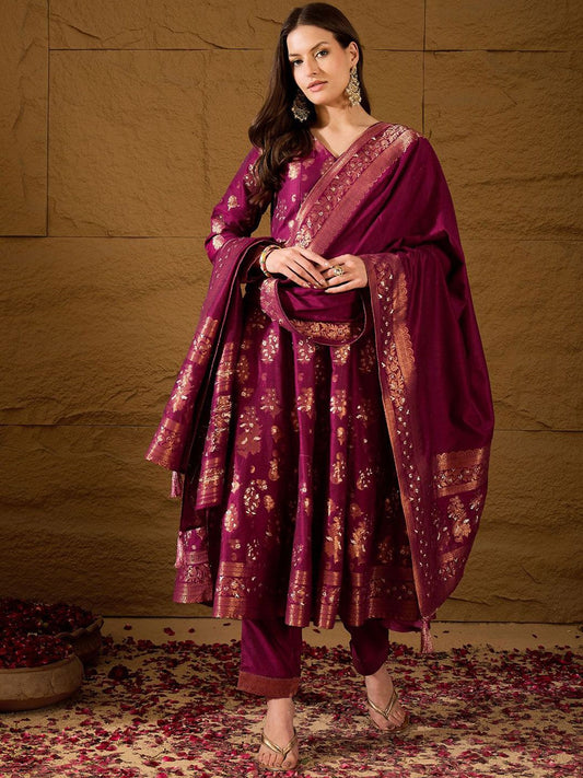 Dhiyona PD Women Floral Woven Design Kurta With Trouser And Dupatta Set