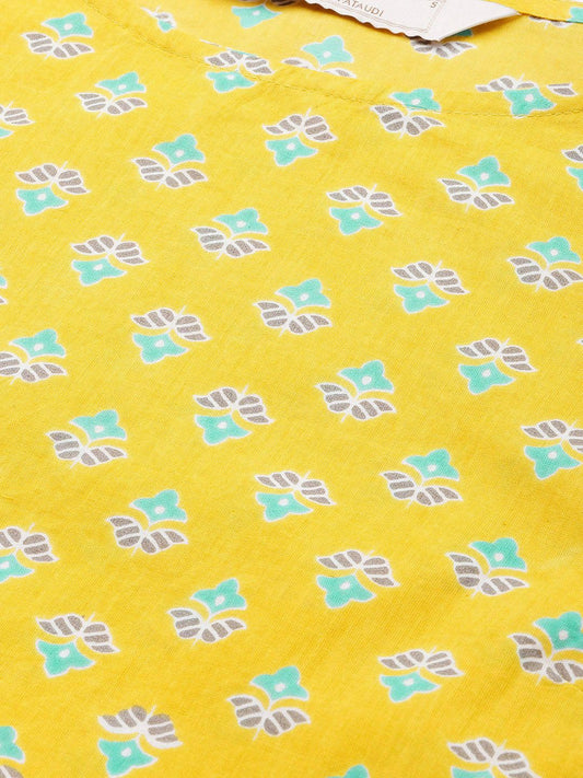 Dhiyona PD Women Women Yellow Printed Cotton Rozana Kurta with Palazzos & With Dupatta