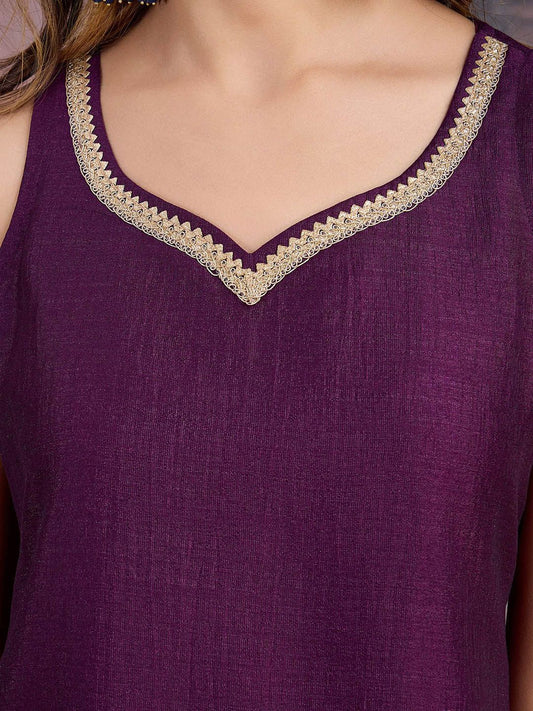 Dhiyona PD Women Zari Work Sleeveless Straight Kurta And Palazzo With Dupatta