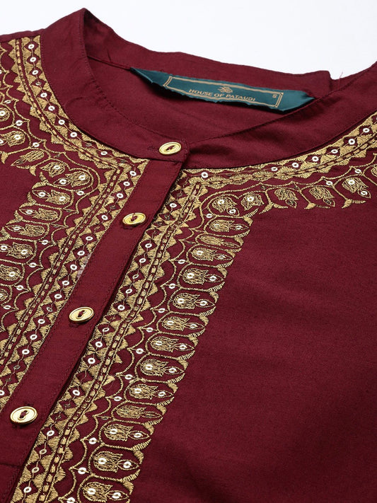 Dhiyona PD Women Embroidered Pure Cotton A-Line Kurta With Palazzo Set