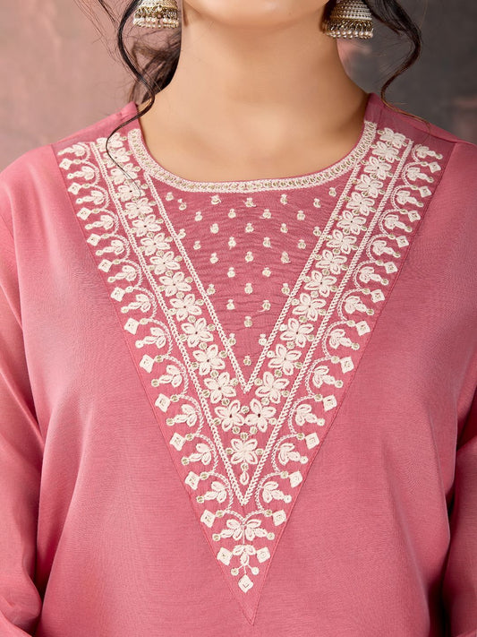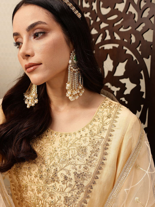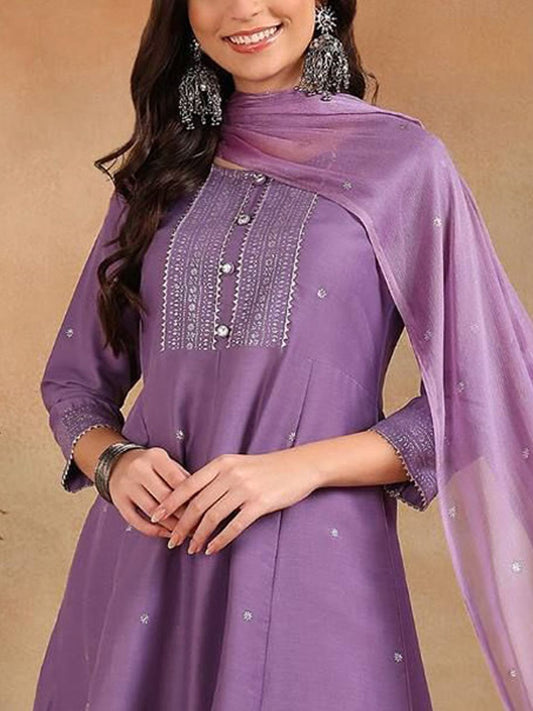 Dhiyona PD Women Self Design Sequinned Embroidered Kurta With Trouser & Dupatta