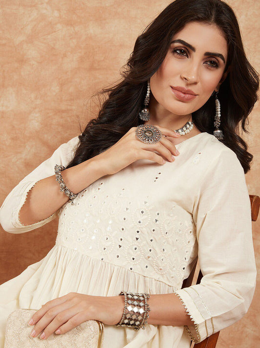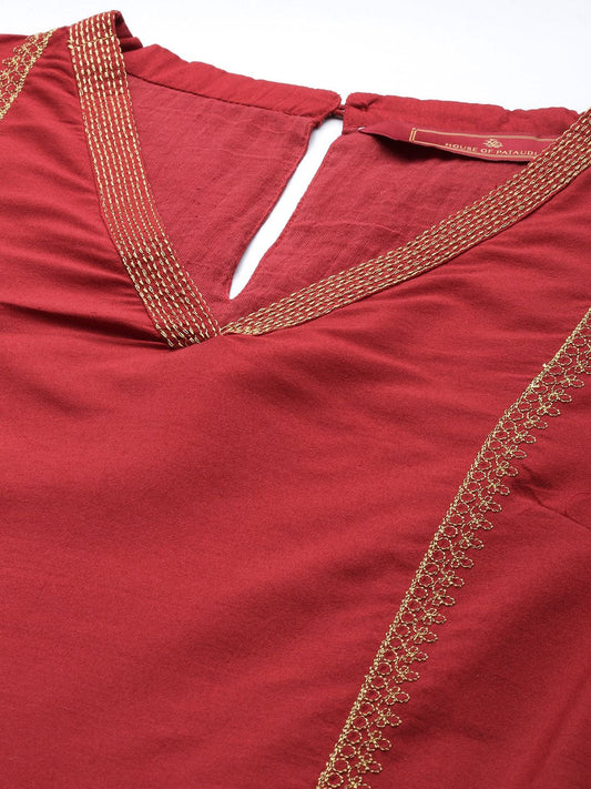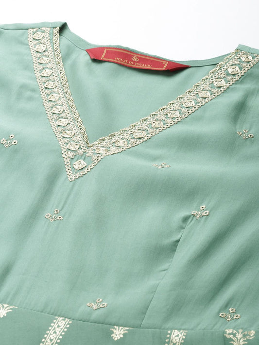 Dhiyona PD Women Embroidered Pure Cotton A-Line Kurta With Palazzo Set