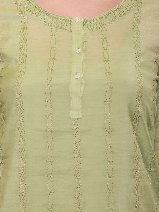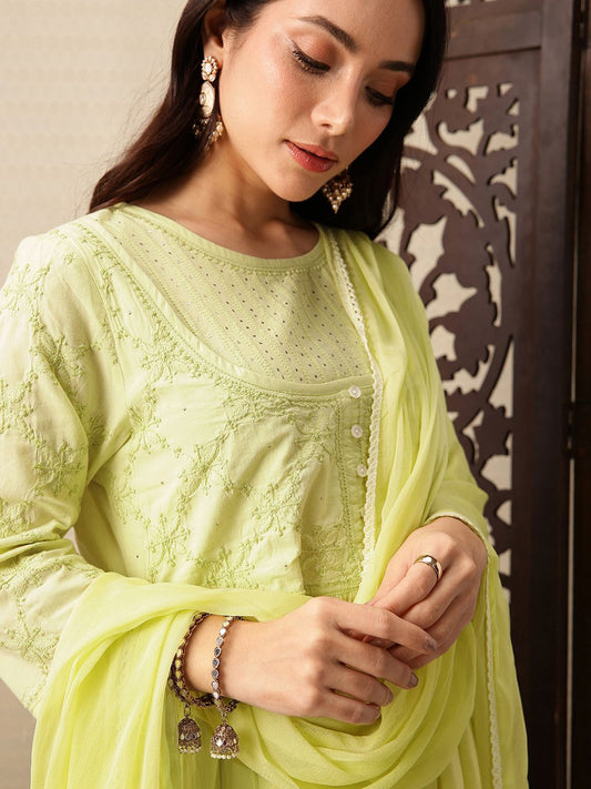 Dhiyona PD Women Chikankari Embroidered Straight Kurta With Trouser & Dupatta Set