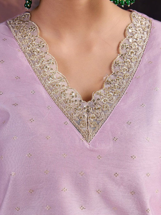 Dhiyona PD Women Woven Design Round Neck Three-Quarter Sleeves Chanderi Cotton Kurta Set