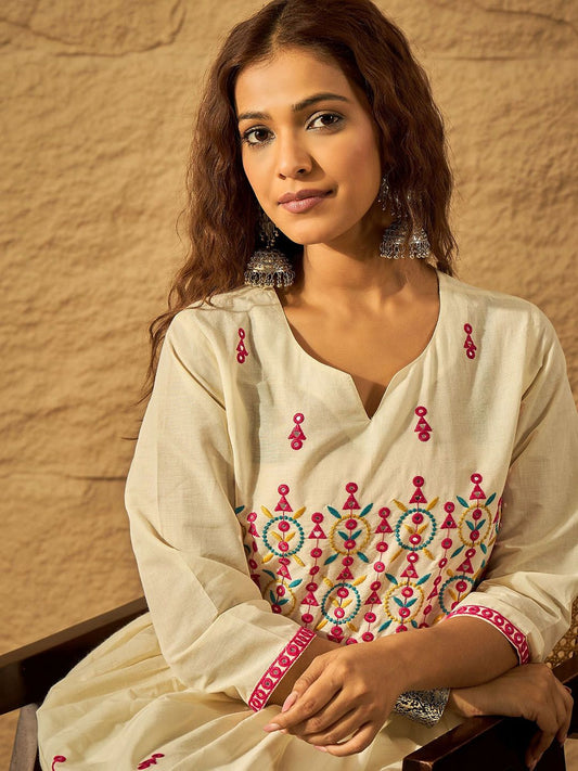 Dhiyona PD Women Women Floral Embroidered Cotton Kurta with Trousers