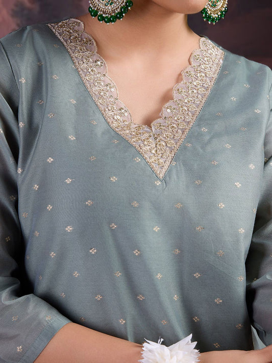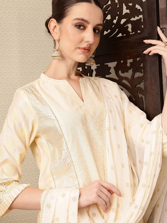 Dhiyona PD Women Floral Woven Design V-Neck Straight Kurta With Trouser & Dupatta