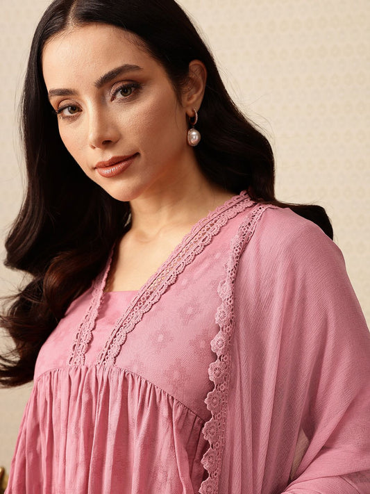 Dhiyona PD Women Women Woven Design Anarkali Kurta with Trouser & Dupatta