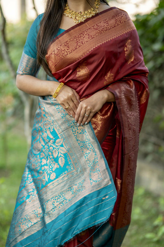 Women Paithani Isha Maroon Saree With Unstiched Blouse