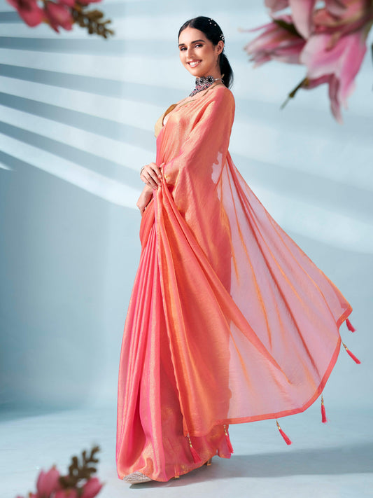 Women's Tissue Peach Embellished Designer Saree With Blouse Piece