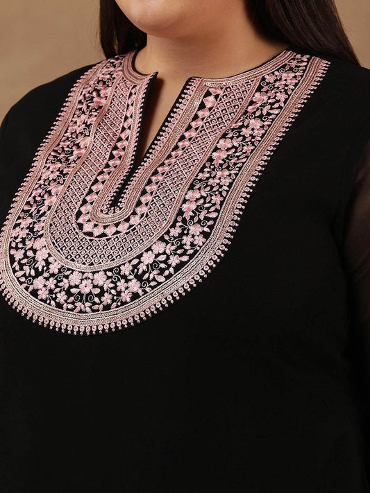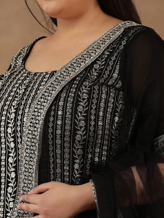 Dhiyona IN Plus Size Embroidered Sequin Georgette Straight Kurta With Sharara & Dupatta