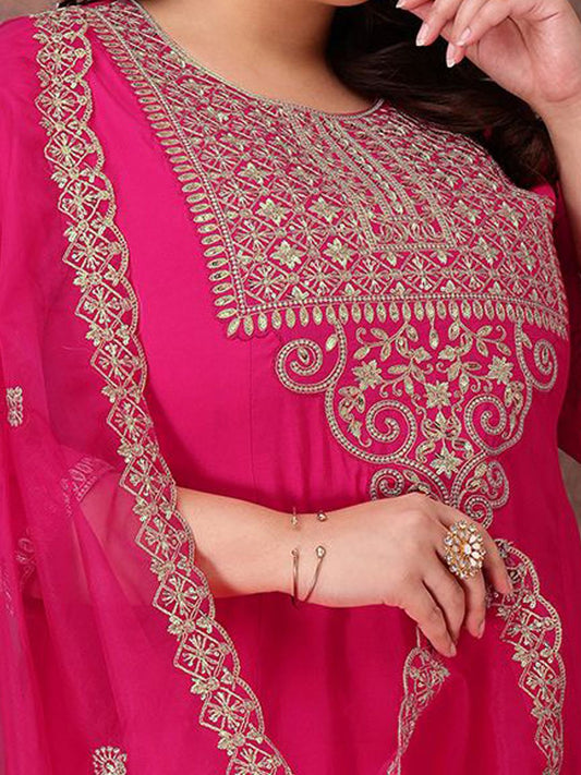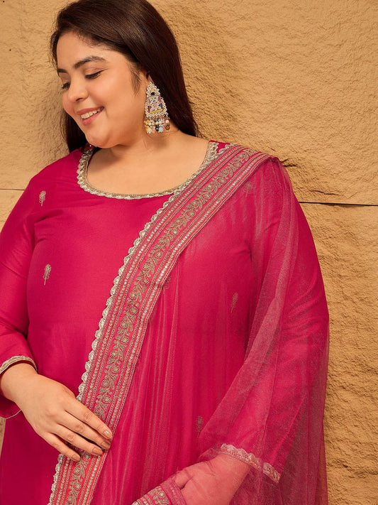 Dhiyona IN Women Plus Size Yoke Design Regular Thread Work Kurta with Palazzos & Dupatta