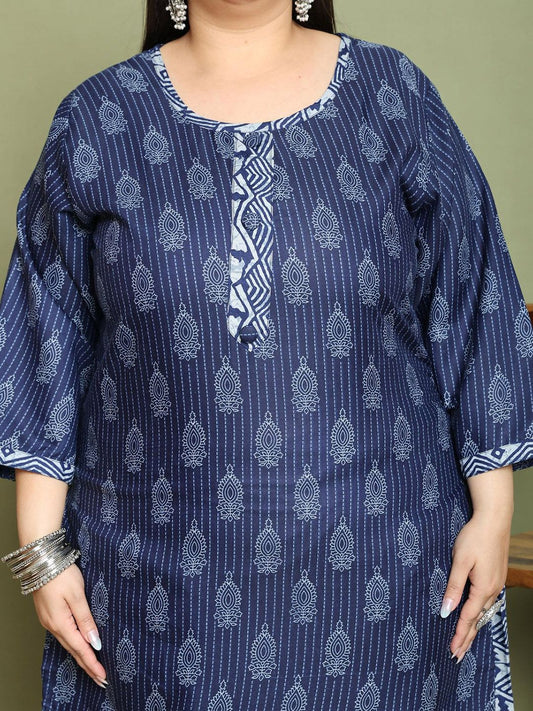 Dhiyona KL Plus Size Floral Printed Pure Cotton Straight Kurta with Palazzos & Dupatta