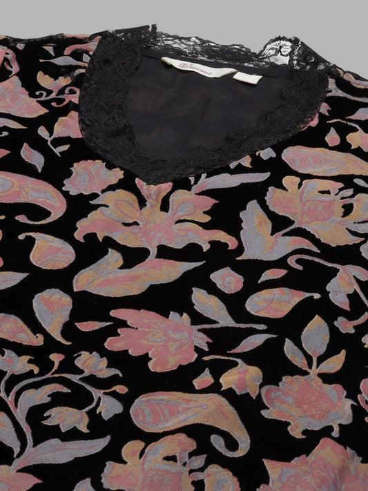 Dhiyona KL Floral Printed Straight Velvet Kurta With Harem Pants & Dupatta