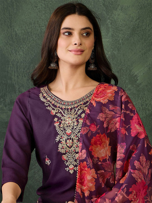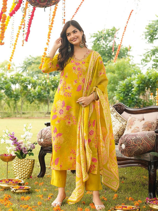 Dhiyona KL Floral Printed Straight Kurta With Trouser And Dupatta