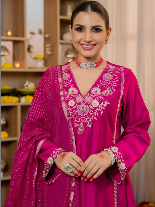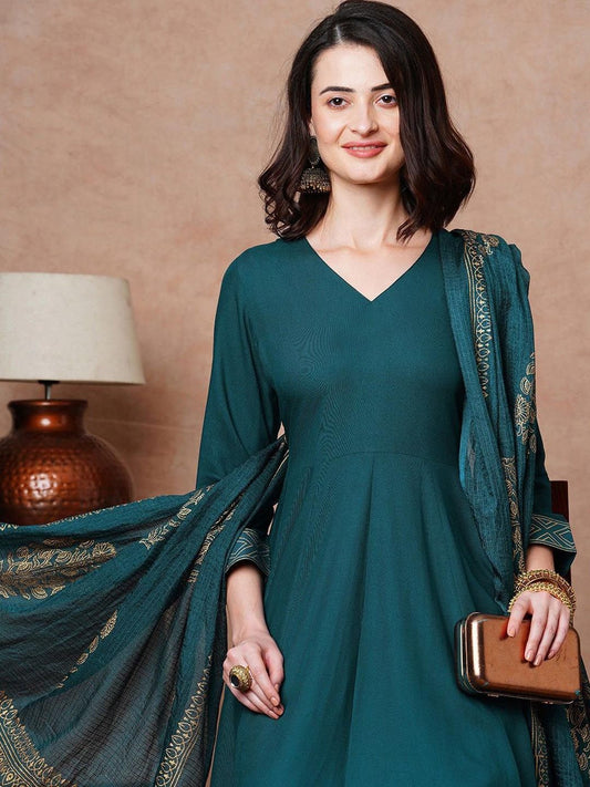Dhiyona KL V Neck Anarkali Kurta With Trousers & Dupatta