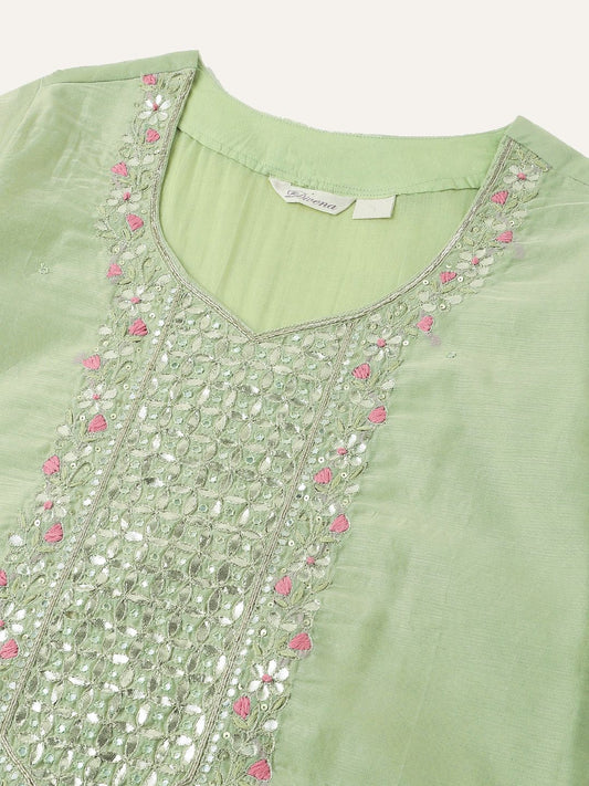 Dhiyona KL Women Regular Sequinned Kurta with Trousers & With Dupatta