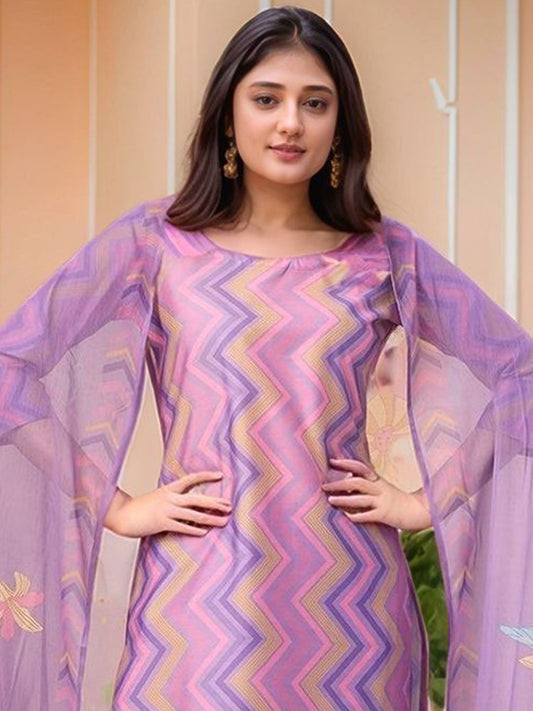 Dhiyona KL Geometric Printed Notch Neck Straight Kurta With Trousers And Dupatta