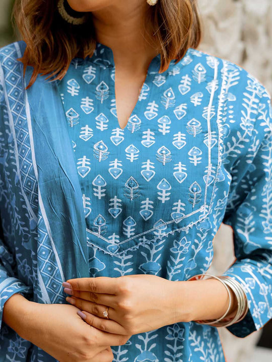 Dhiyona KL Floral Printed Pure Cotton Kurta With Salwar & Dupatta