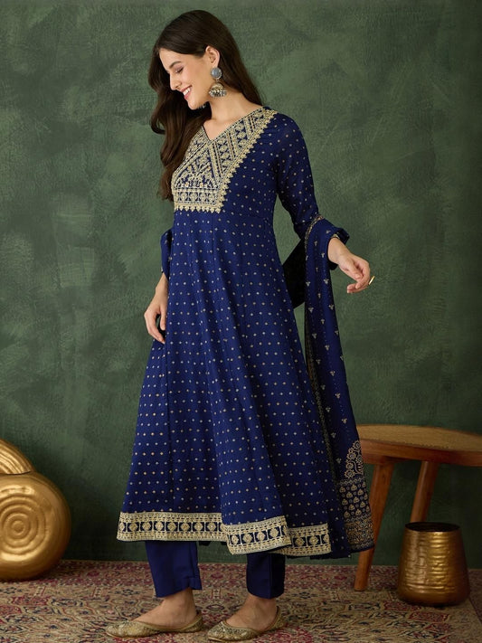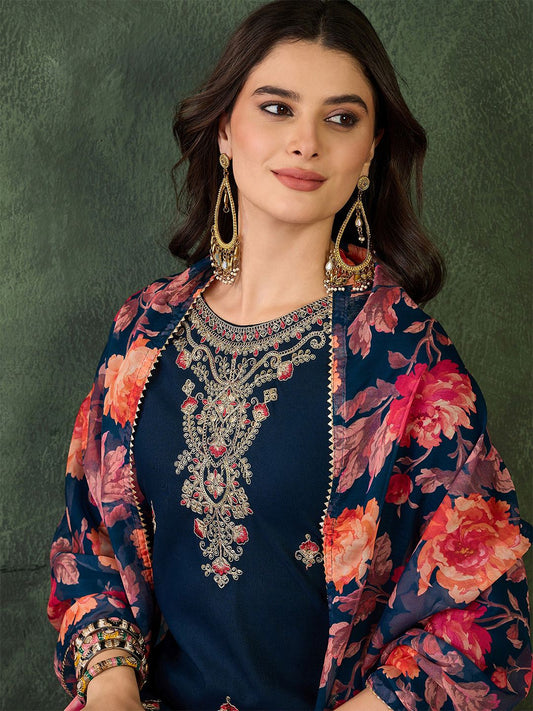 Dhiyona KL Women Blue Art Silk Embroidered Republic Day Republic Day Kurta Sets