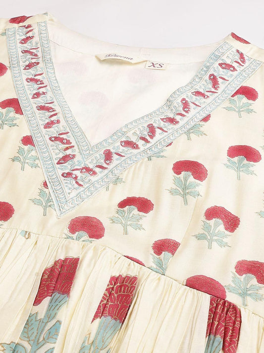 Dhiyona KL Women Floral Printed Pleated Sequinned Chanderi Cotton Kurta Set