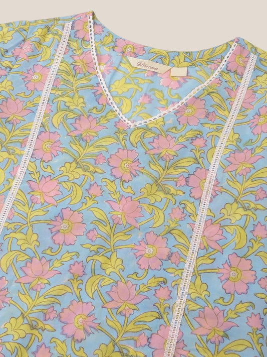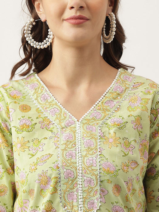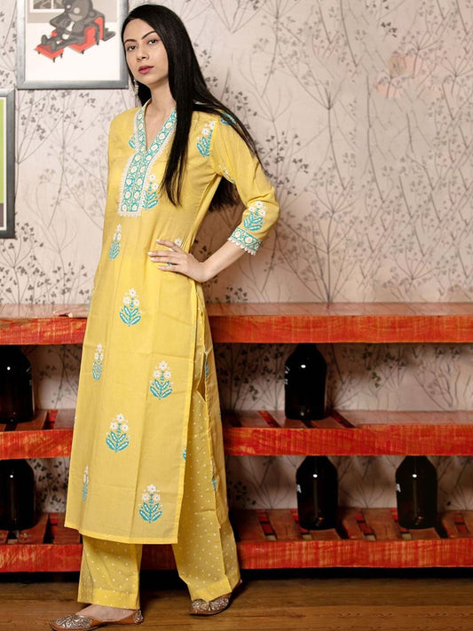 Dhiyona KL Floral Printed Gotta Patti Pure Cotton Kurta With Salwar & Dupatta