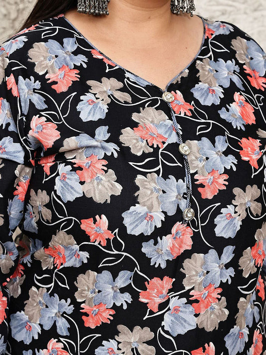 Dhiyona KL Plus Size Floral Printed Pure Cotton Kurta with Trousers & Dupatta