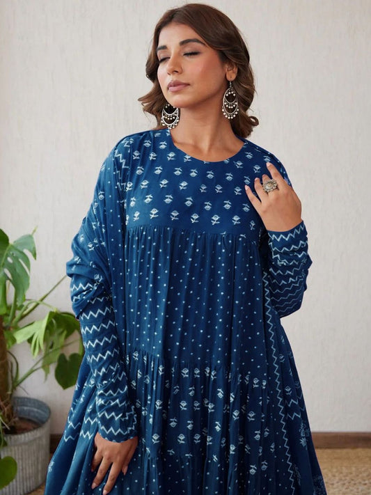 Dhiyona KL Women Printed Anarkali Kurta With Palazzos And Dupatta