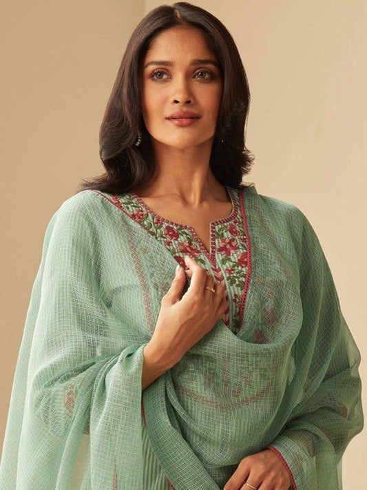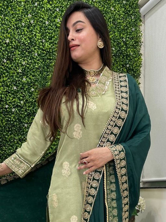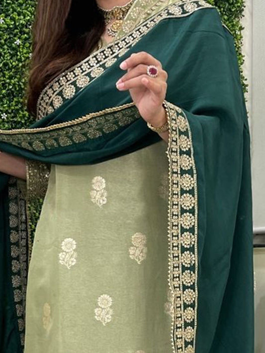 Dhiyona KL Floral Woven Design V Neck Kurta With Trousers & Dupatta