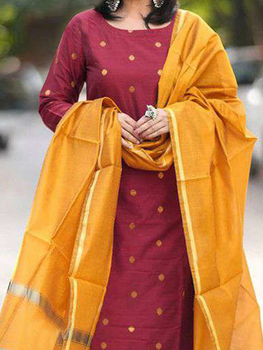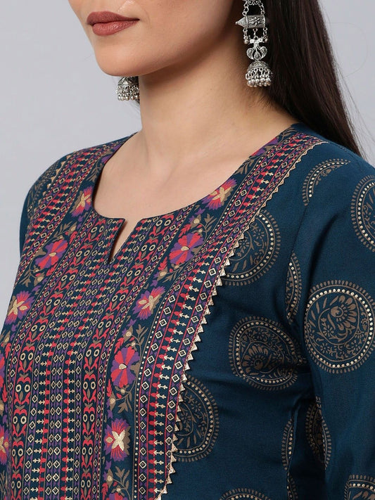 Dhiyona KL Ethnic Motifs Printed Round Neck Kurta With Trouser & Dupatta