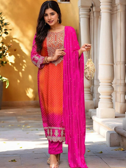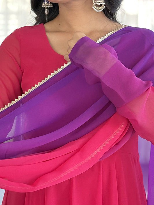 Dhiyona KL Ombre Printed Anarkali Kurta With Trousers And Dupatta