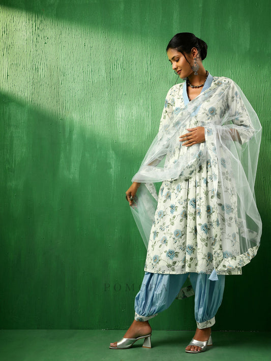 Adaa Blue Rose Cotton Anarkali Set